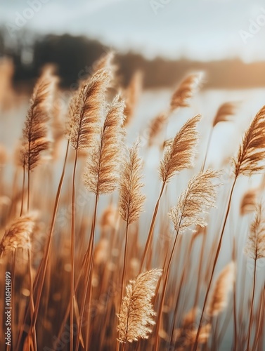 Fototapeta premium Golden reeds lakes autumn colors beautiful light and shadow