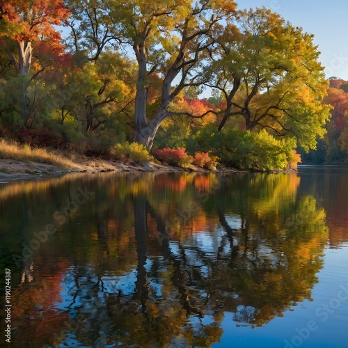 © KeeriwalaGamage, Fototapeta premium Golden Reflections: Querulous California on a Serene Riverbank
