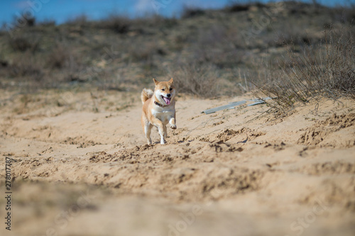 © Даша Швецова, Fototapeta premium golden retriever and siba inu dog play