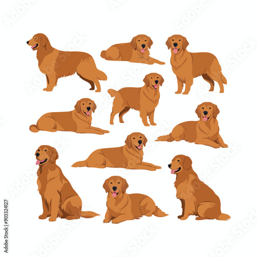Obraz premium Golden Retriever dog silhouette set animals vector template