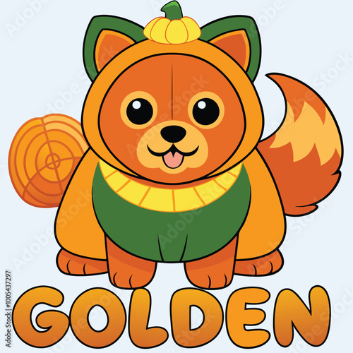 Obraz premium "Golden Retriever Dressed as a Pumpkin with Halloween Decorations - Vector Art"