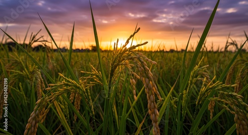 © RAMS, Fototapeta premium Golden Rice Field Sunset