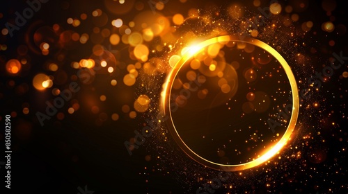 Obraz premium Golden Ring of Light on a Black Background with Bokeh