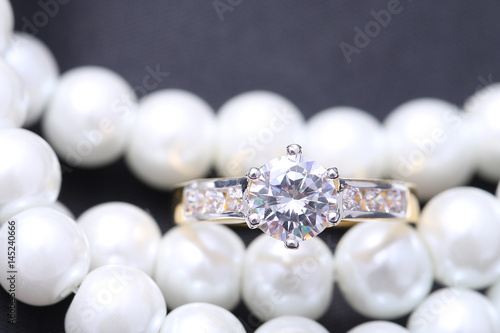 © Bordin, Naklejka premium Golden ring with diamond and pearl