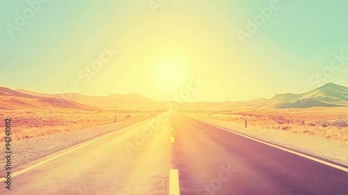 Fototapeta premium Golden Road to Adventure: A sun-drenched highway stretches towards a distant...