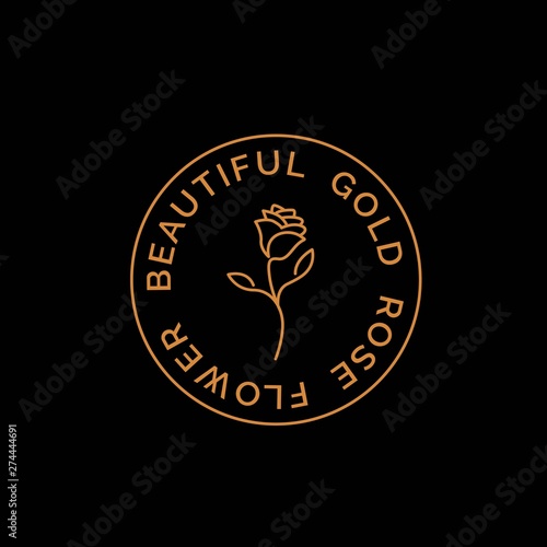 Fototapeta premium Golden rose flower line art illustration seal logo design