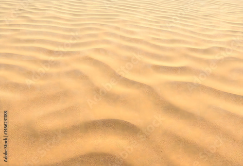 © Defier, Obraz premium Golden sand dunes with subtle patterns and soft curves under natural sunlight creating a warm and tranquil desert scene.