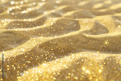 Obraz premium Golden sand with sparkling texture and shimmering light reflection creating a...