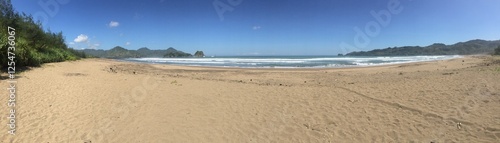 Fototapeta premium Golden Sands and Blue Waves: The Beauty of Pacitan Beach