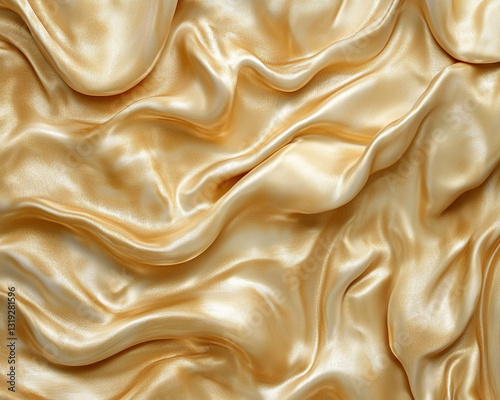 Fototapeta premium Golden satin fabric texture, soft folds and ripples create a luxurious and...