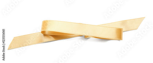 © Pixel-Shot, Naklejka premium Golden satin ribbon isolated on white background