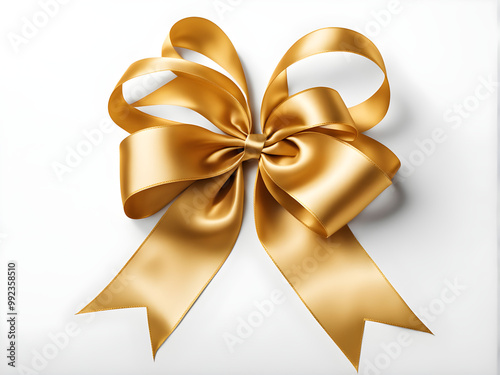 © Nyetock, Naklejka premium Golden satin ribbon isolated on white background