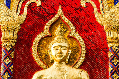© lightofchairat, Fototapeta premium golden sclupture buddha wat phrabahtseeroy chiangmai Thailand
