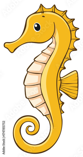 © Maryna, Fototapeta premium Golden Sea Horse Cartoon Illustration Marine Animal Vector Design Artwork