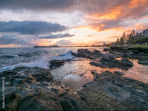 © Kevin, Fototapeta premium Golden Seaside Sunrise with Reflections