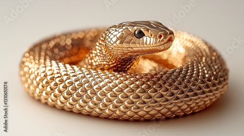 Fototapeta premium Golden serpent coils on simple backdrop, elegant, gleaming reptilian...