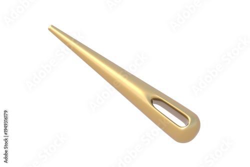 Obraz premium Golden sewing needle isolated on white background. Equipment for atelier. 3d render