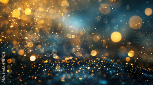 © peera, Naklejka premium Golden Shiny Abstract Background, Blurred Emerald Elements