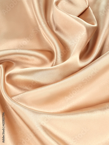 © KPad, Obraz premium Golden silk texture, with beautiful folds, in highlights, vertical arrangement.