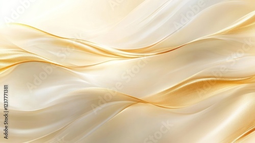 © Almahyra, Obraz premium Golden silk waves, flowing fabric, light background, elegant design, website header
