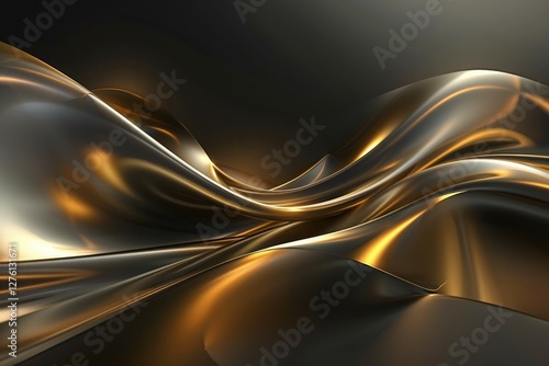 © Larysa, Fototapeta premium Golden silk waves in motion. AI image