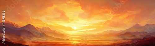 © imran, Obraz premium Golden Sky Sunset with Romantic Orange and Yellow Light Over Horizon -