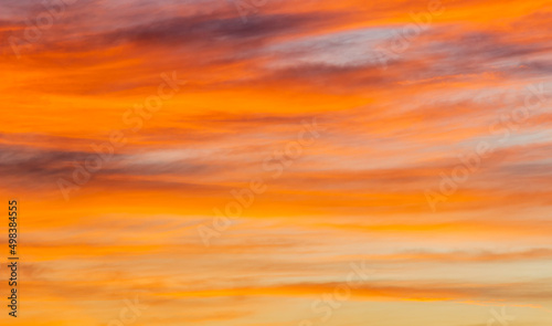 © Nature Peaceful , Obraz premium Golden sky with orange sunlight clouds in the evening on gold hour sky background