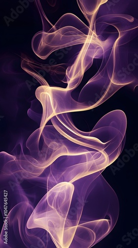 Naklejka premium Golden Smoke Waves on Purple Background, Abstract Image, Texture, Pattern Background, Wallpaper, Cover and Screen for Smartphone, PC, Laptop, 9:16 and 16:9 Format
