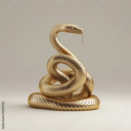© AURA COLLECTIONS, Obraz premium Golden Snake, Abstract, 3D Render, Minimalism, Design.