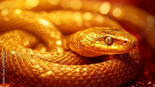 Fototapeta premium Golden Snake Coiled In A Glowing Amber Hue