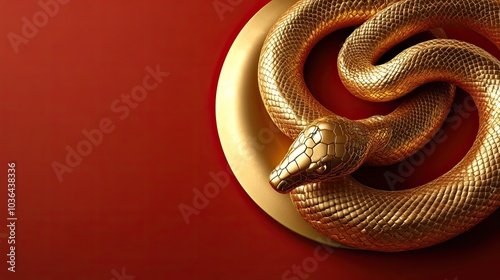 © Dragon, Obraz premium Golden Snake Coiled on Red Background