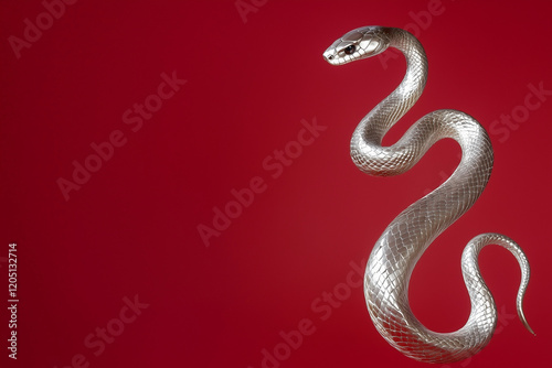 © Digital Sensei, Obraz premium Golden snake on a red background, Chinese New Year concept