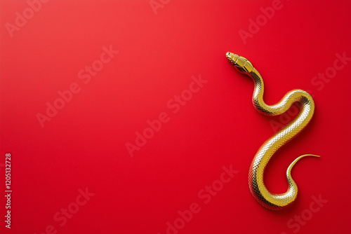© Digital Sensei, Obraz premium Golden snake on a red background, Chinese New Year concept