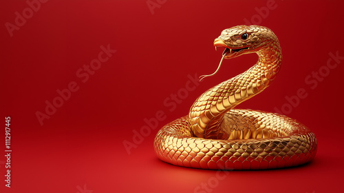 Fototapeta premium golden snake on red background for banner greetings design. China zodiac...