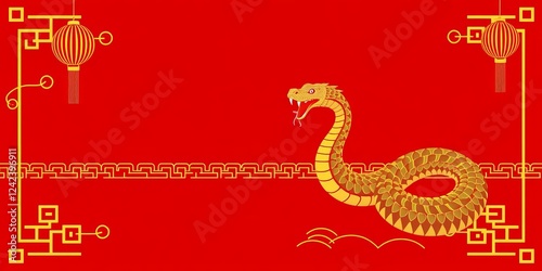 Fototapeta premium Golden snake silhouette on a vibrant red background with Chinese New Year...