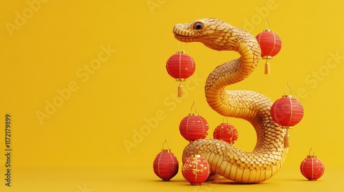 Fototapeta premium Golden Snake with Red Lanterns Celebrates Chinese New Year