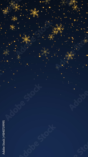 © Hasti, Naklejka premium golden snow flakes and glitter stars dust falling on blue ,snow flakes new year and Christmas vertical social media design element