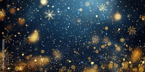 Fototapeta premium Golden Snowflakes on a Dark Blue Background