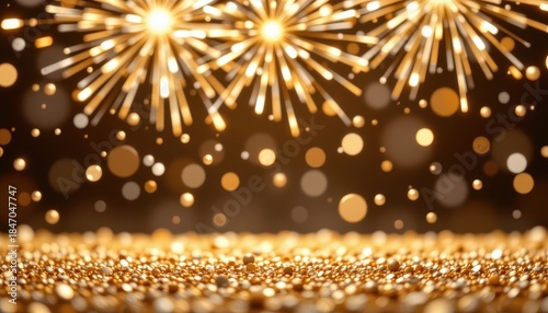 © K-MookPan, Naklejka premium Golden Sparkle Background with Glitter Effects for Celebrations and Parties Full of Charm and Cheerful Atmosphere