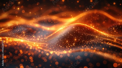 © M.A.K, Naklejka premium Golden Sparkle Waves Abstract Background