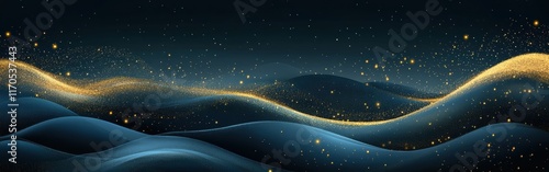 Obraz premium Golden sparkles and shimmering waves creating a magical landscape at night