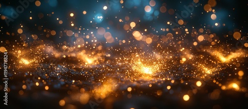 Obraz premium Golden sparkles, dark background, bokeh lights, festive celebration