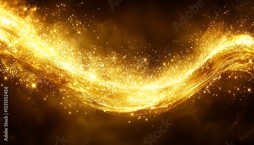 © Bagas, Obraz premium Golden Sparks Swirl, Flowing on a Dark Background