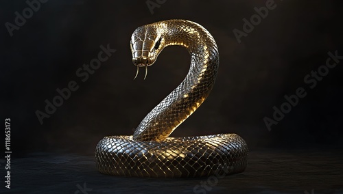 © DnQajik, Fototapeta premium Golden Spiral: Close-Up of a Snake's Textured Elegance in Photorealistic Detail