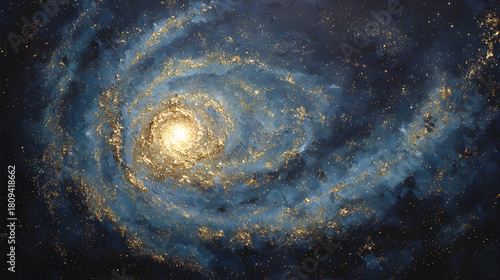 © Nawab stock, Fototapeta premium Golden Spiral Galaxy on a Deep Blue Starry Canvas
