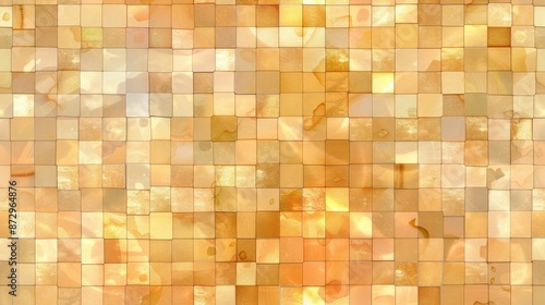 Fototapeta premium Golden square mosaic tiles forming a seamless pattern with a warm, rich color...