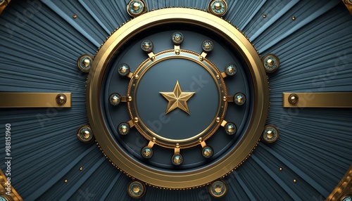 © Nob, Naklejka premium Golden Star Emblem on a Black and Gold Door with Circular Design