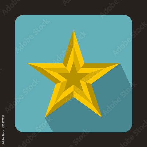 © ylivdesign, Obraz premium Golden star icon in flat style on a baby blue background