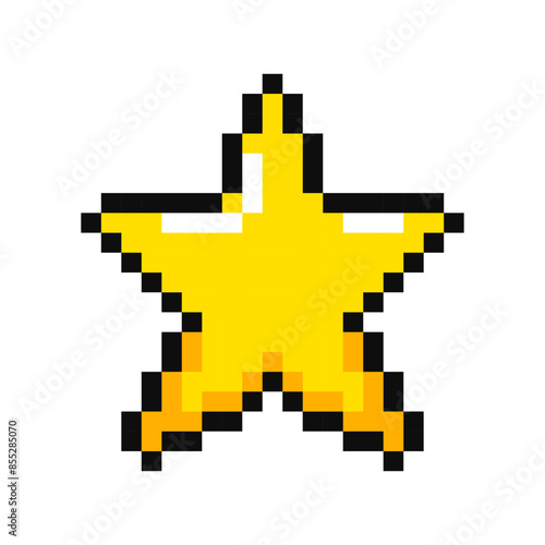 © Mariia, Obraz premium Golden Star, pixel item for game interface. Star magic game element. Star, 8 bit resource.