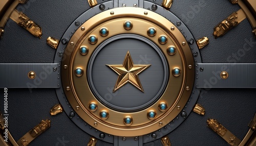 © Nob, Naklejka premium Golden Star Within a Circular Vault Door with Jewels